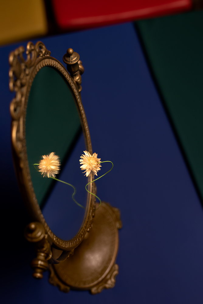 Cette série s’inscrit dans une recherche esthétique sur la composition des formes et l’agencement des couleurs. Je m’inspire de l’étymologie très poétique du mot photographie : peindre avec la lumière et je n’utilise que les couleurs primaires et secondaires de la lumière : le rouge, le vert, le bleu, le cyan, le magenta et le jaune. Je recherche l’harmonie de formes simples et de couleurs avec la dominance d’au moins deux de ces couleurs dans la composition, dans une tonalité toujours sombre et intense. L’exigence est aussi minimaliste. Mon but dans ce dépouillement formel et ce choix de couleurs est de trouver l’équilibre parfait et une sensation de plénitude et de sérénité qui naissent de sa contemplation.