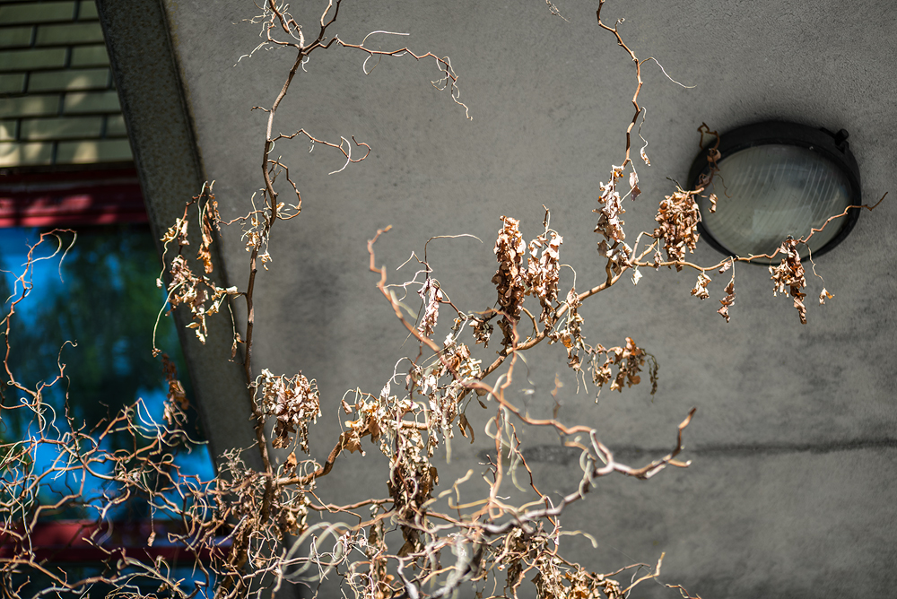 Dans Végétation urbaine, partie I, je prends en photo des plantes urbaine en extérieur. Je reste en général assez loin du sujet, il s’agit de créer des compositions avec des plantes s’insérant de manière harmonieuse dans un décors urbain. Je prends en photo toutes les plantes urbaines présentes : celles qui sont disposées dans la ville par l’humain, mais aussi celles qui n’ont pas été invitées et qui réussissent à pousser malgré le bitume.